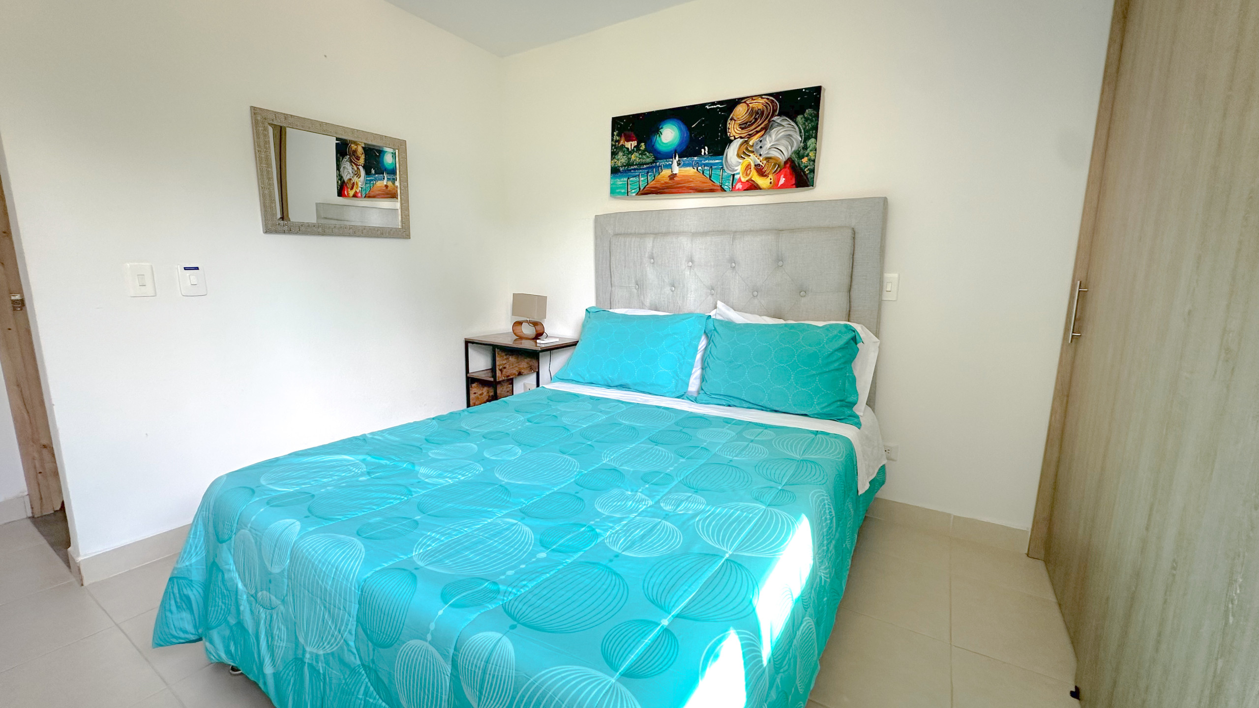 Moderno apartamento con capacidad para 5 personas, 2 habitaciones y 2 baños, con un hermoso balcón, ubicado en el exclusivo conjunto residencial Bello Horizonte Plaza. A solo 5 minutos del aeropuerto en un lugar tranquilo, ideal para el descanso.