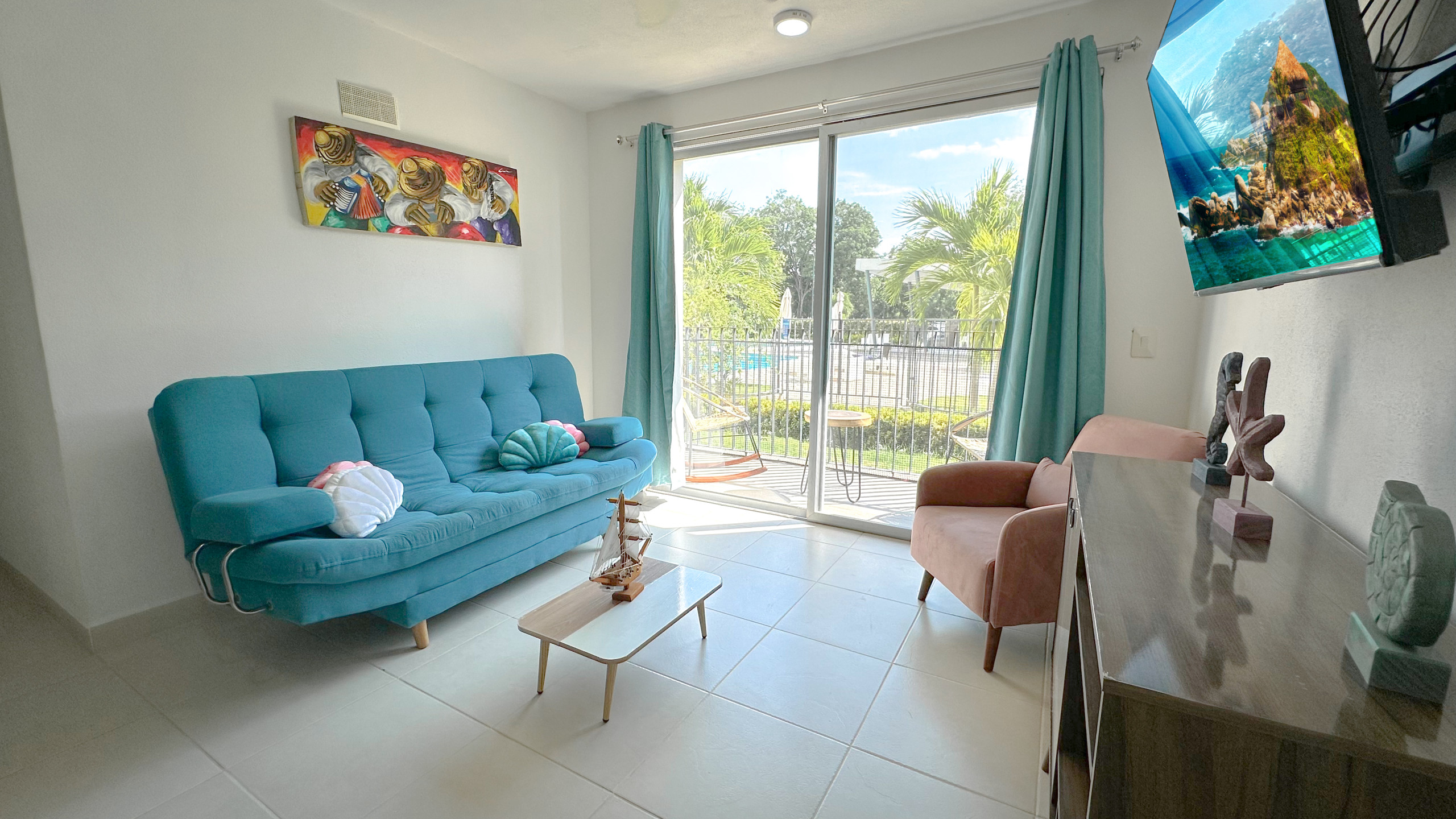 Disfruta del sol y del aire fresco desde tu balcón privado, el cual cuenta con muebles de exterior para que te relajes mientras observas la fauna local. Dentro del conjunto, podrás aprovechar al máximo los días soleados en las piscinas para adultos y niños, o mantener tu rutina de ejercicio en el gimnasio, las zonas de yoga y ejercicio al aire libre. La verdadera joya del lugar son sus áreas especiales para el avistamiento de aves, que te permitirán conectar con la naturaleza de Santa Marta de una forma única.