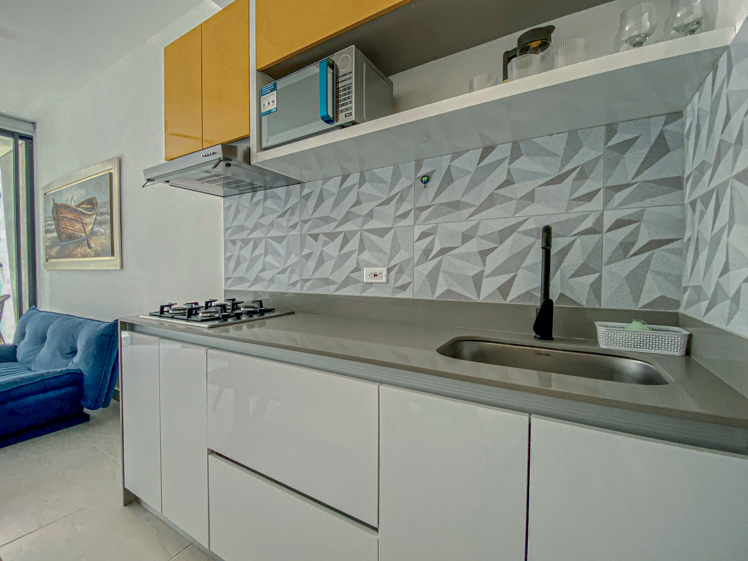 Ubicación estratégica: A distancia para caminar de Bello Horizonte/Playa Pozos Colorados, cerca del Centro Comercial Zazué y el supermercado Olímpica (Centro Comercial Aluna Plaza). Fácil acceso al Aeropuerto Simón Bolívar, restaurantes, cafés y tiendas locales.